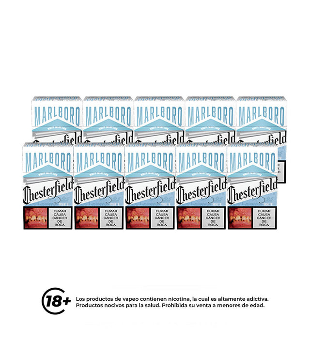 Cartón Paquete Cigarrillo Chesterfield White - 10 Cajetillas